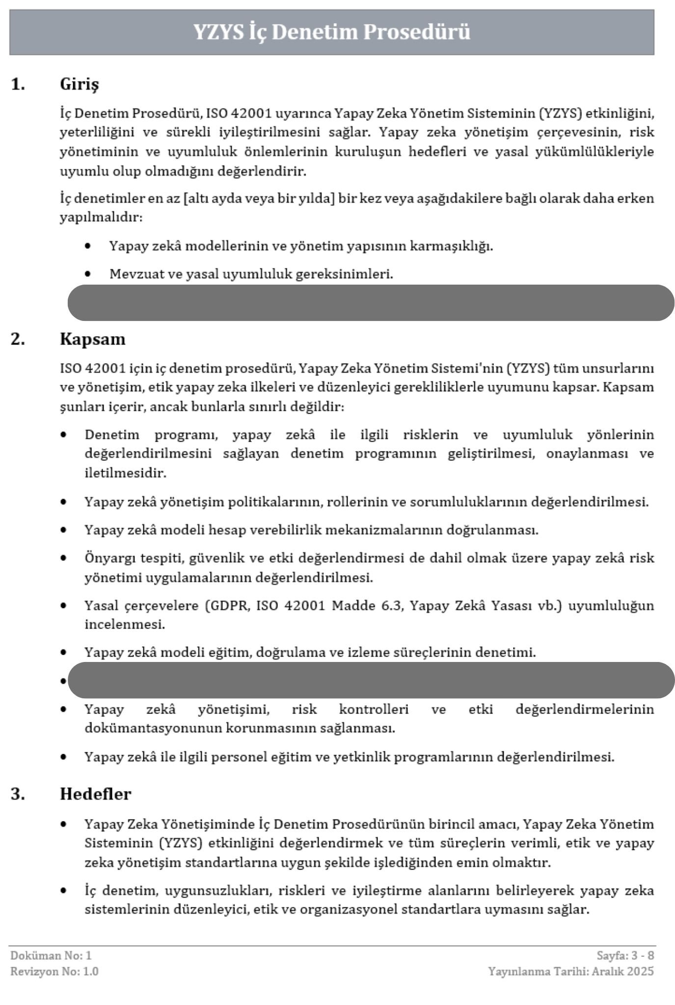 ISO 42001 Belge Seti | Politika, Prosedür, El Kitabı, Form ve İç Denetim Soru Listesi – Türkçe