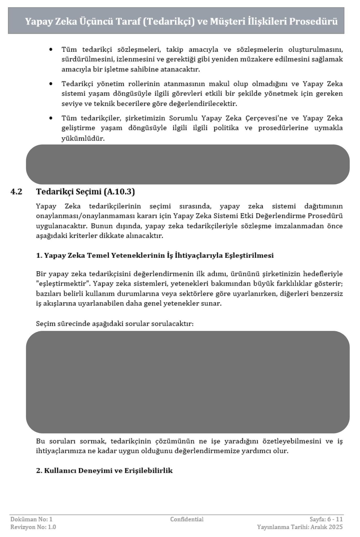 Yapay Zeka Üçüncü Taraf (Tedarikçi) ve Müşteri İlişkileri Prosedürü