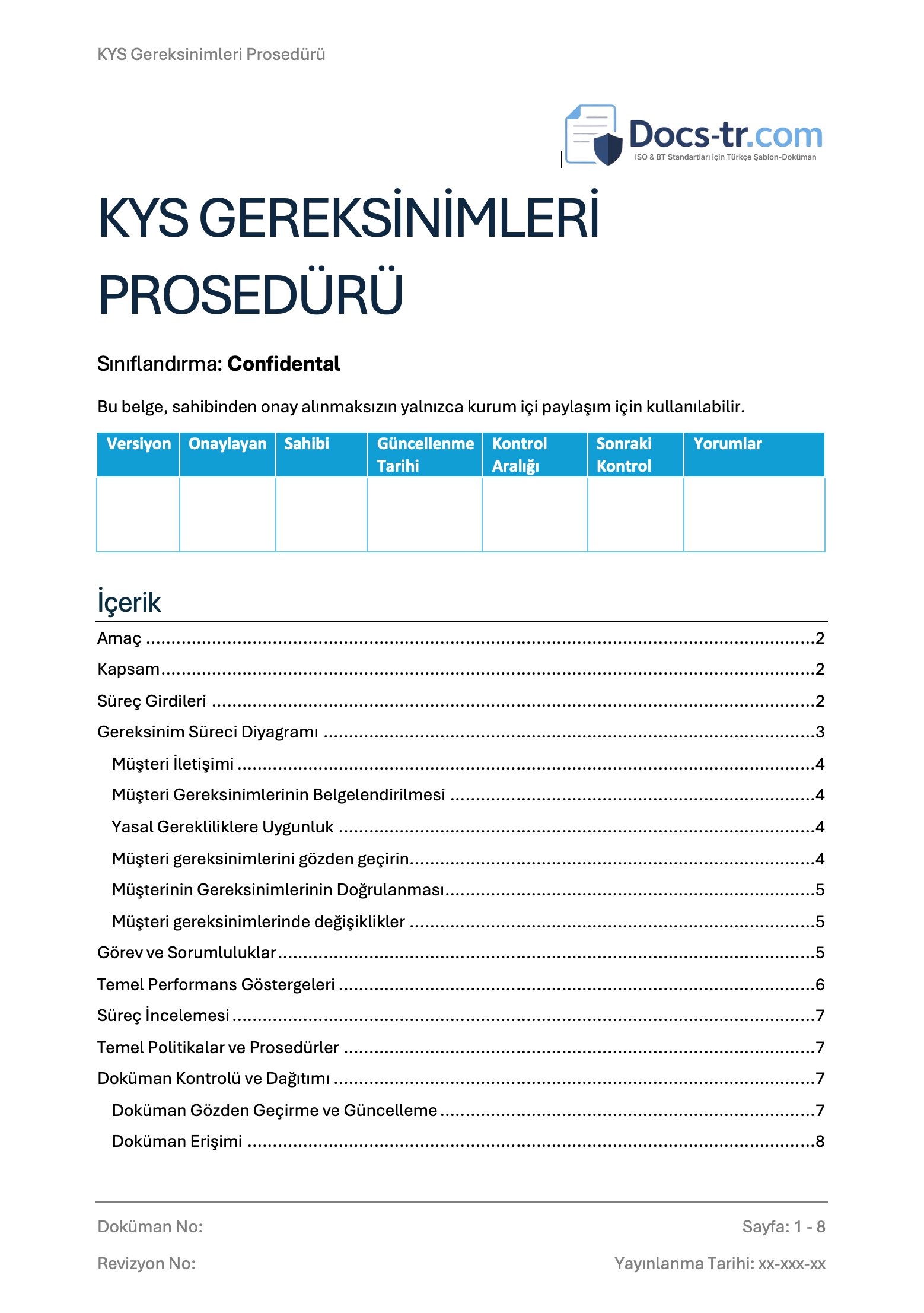 - KYS Gereksinimleri Prosedürü