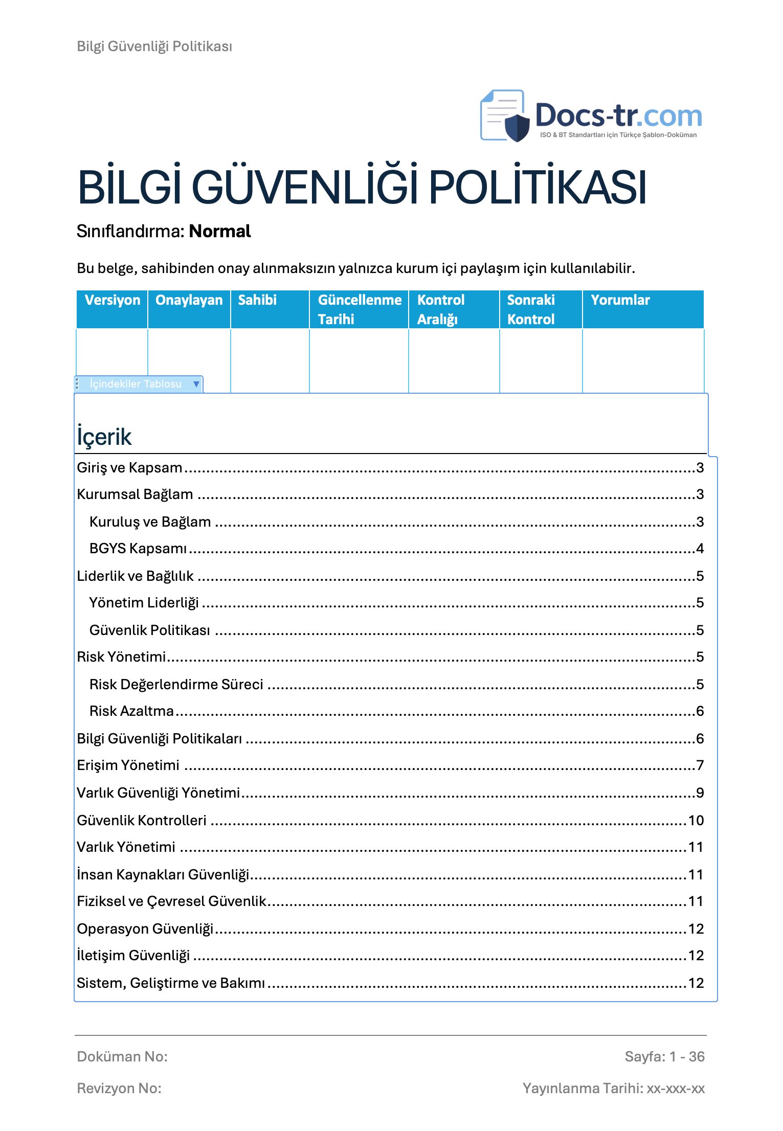 ISO27001 – Bilgi Güvenliği Politikası – Türkçe
